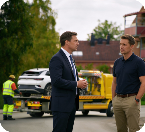 "Today, we responded to a call regarding a vehicle involved in a minor road accident on a busy highway. When we arrived, the situation was slightly chaotic, with traffic moving around the stranded vehicle. Our first priority was safety—we set up warning cones and secured the area to prevent any further accidents. We carefully assessed the car's condition, checking for damage to the frame and wheels, and ensured it was stable for recovery. Throughout the process, we kept the customer informed about each step, explaining what we were doing and how long it would take. Using our specialized recovery equipment, we secured the vehicle and moved it safely off the road without causing any additional damage. After completing the recovery, we advised the customer on next steps, including inspection and insurance procedures. The customer appreciated the thoroughness and professionalism of the service. This job reinforced the importance of teamwork, careful handling, and clear communication in every recovery scenario.